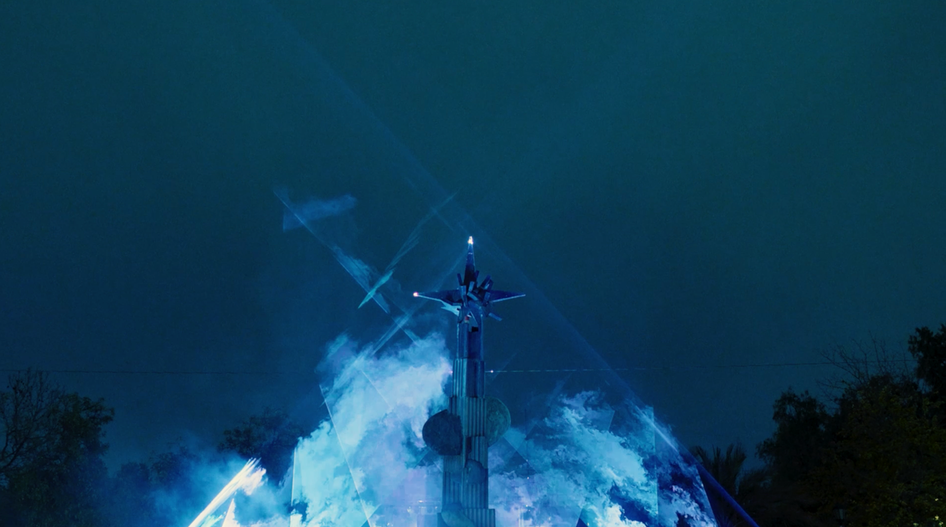 The piece was mounted above the central fountain, delivering an immersive light and effects experience that left the audience in awe.